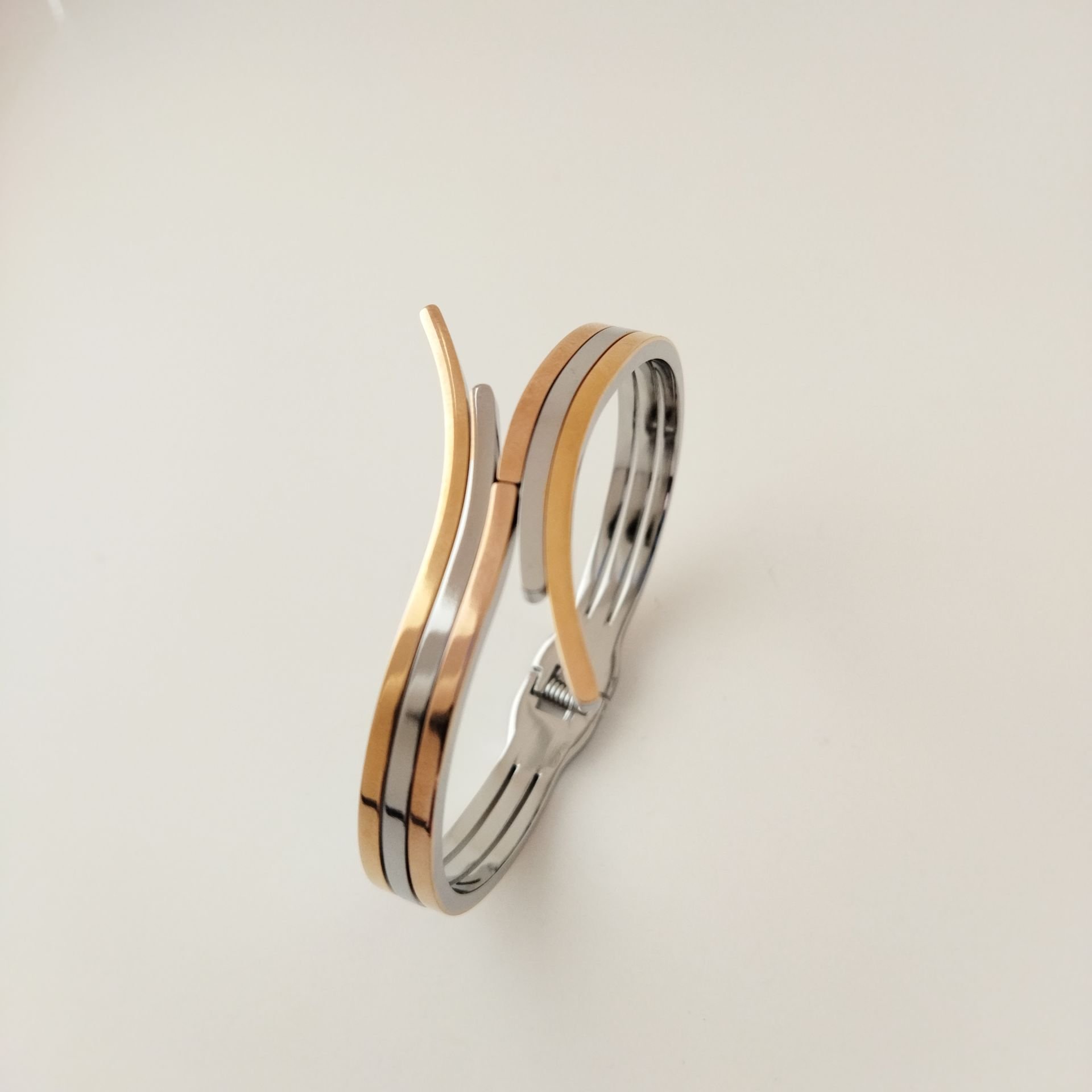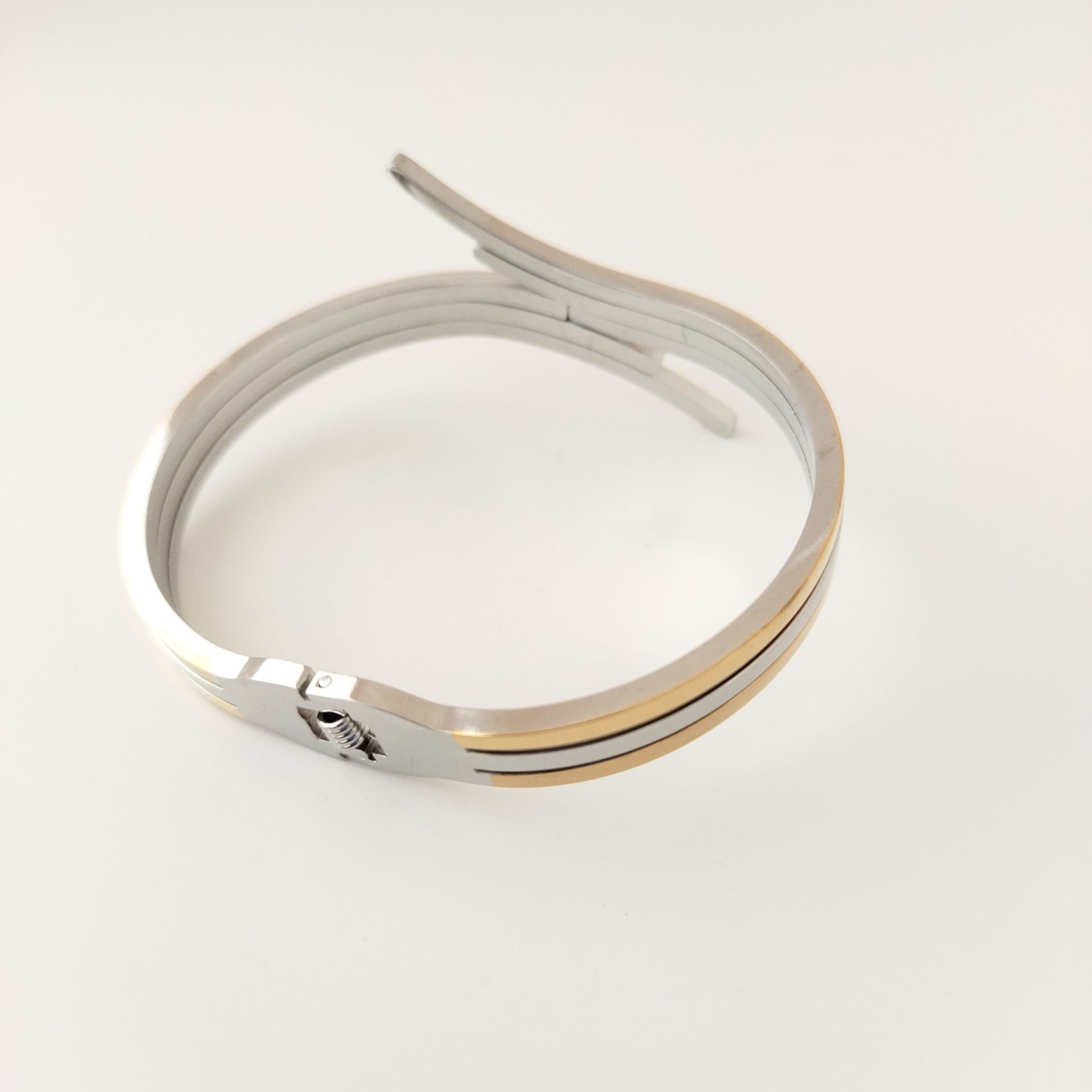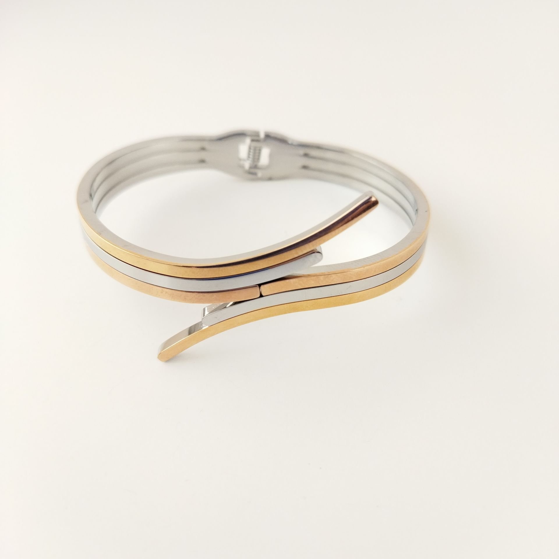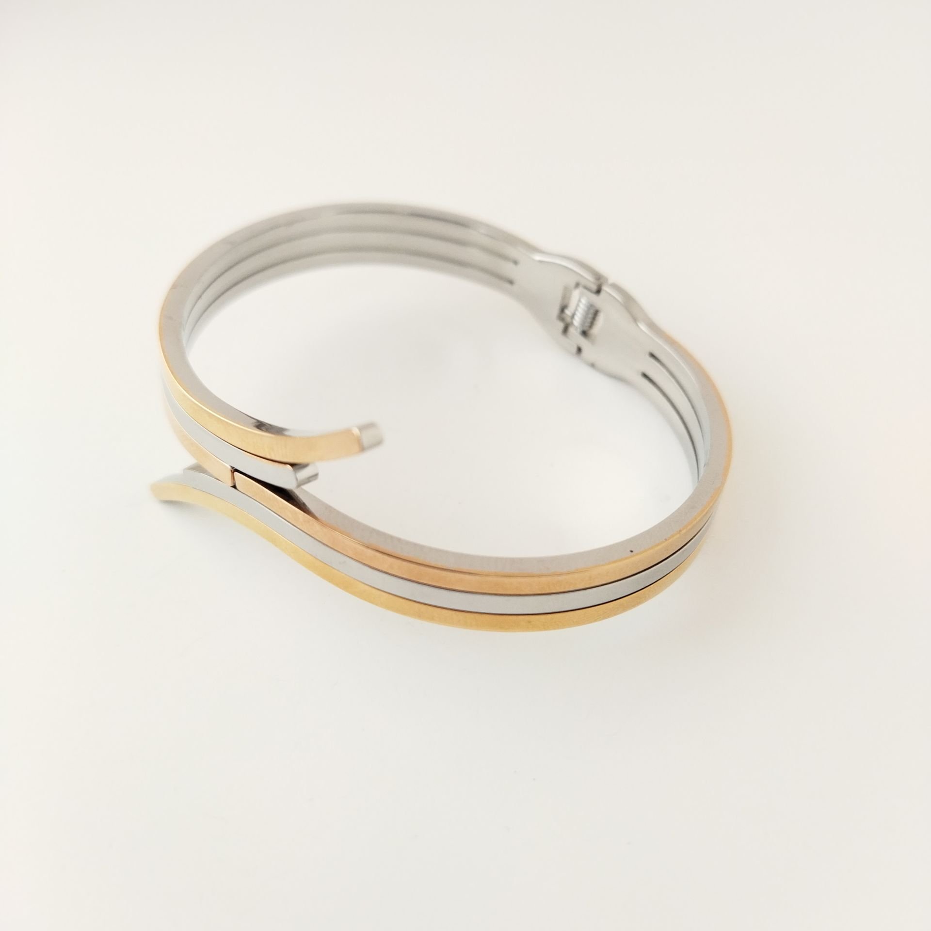 ÇELİK GOLD 3 RENK ÇİZGİ STİL BİLEZİK